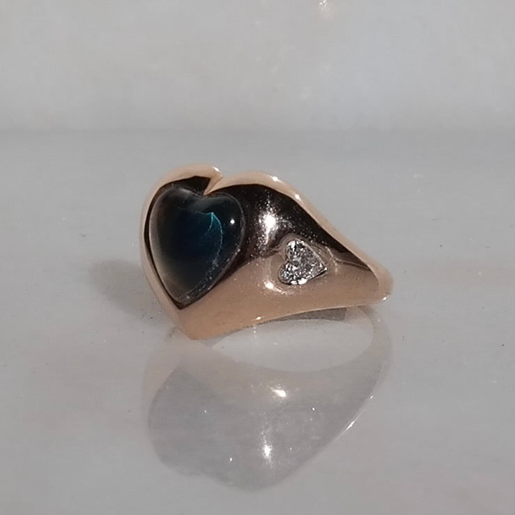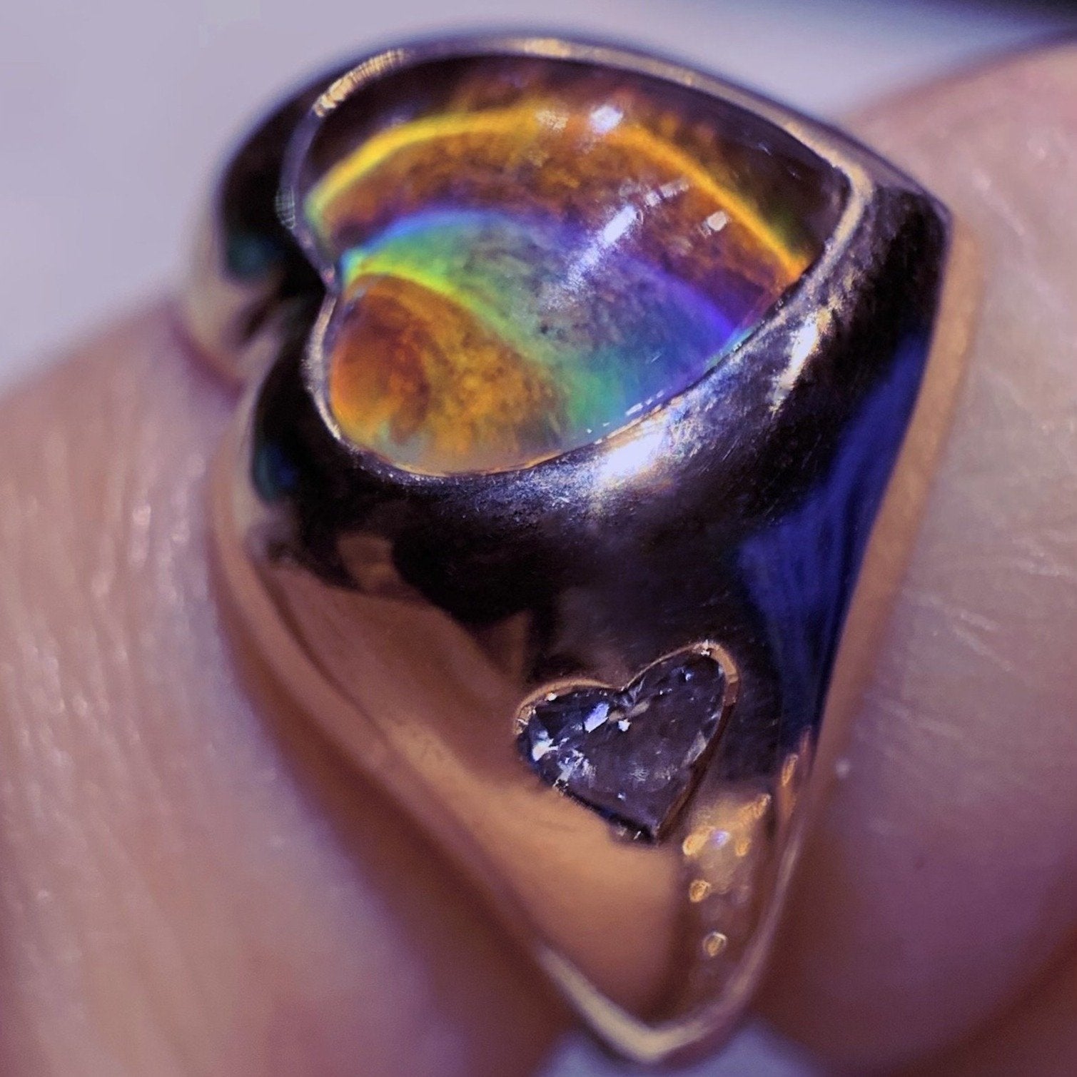 Introducing the Aurore ring, a moodring in 18k gold, with side diamonds, 0.18ct G VS.