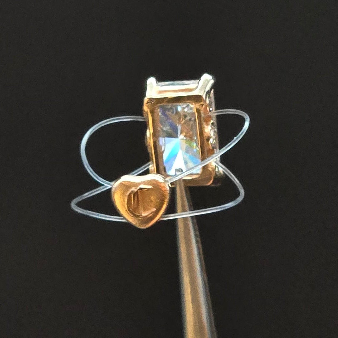 The ring is set with a 2.58 ct lab-grown central diamond, accented by delicate side diamonds. A heart-shaped back piece sits inside the band and holds a hidden diamond against the skin. Lab-grown diamonds are chemically and optically identical to mined diamonds, chosen for their clarity and brilliance.
